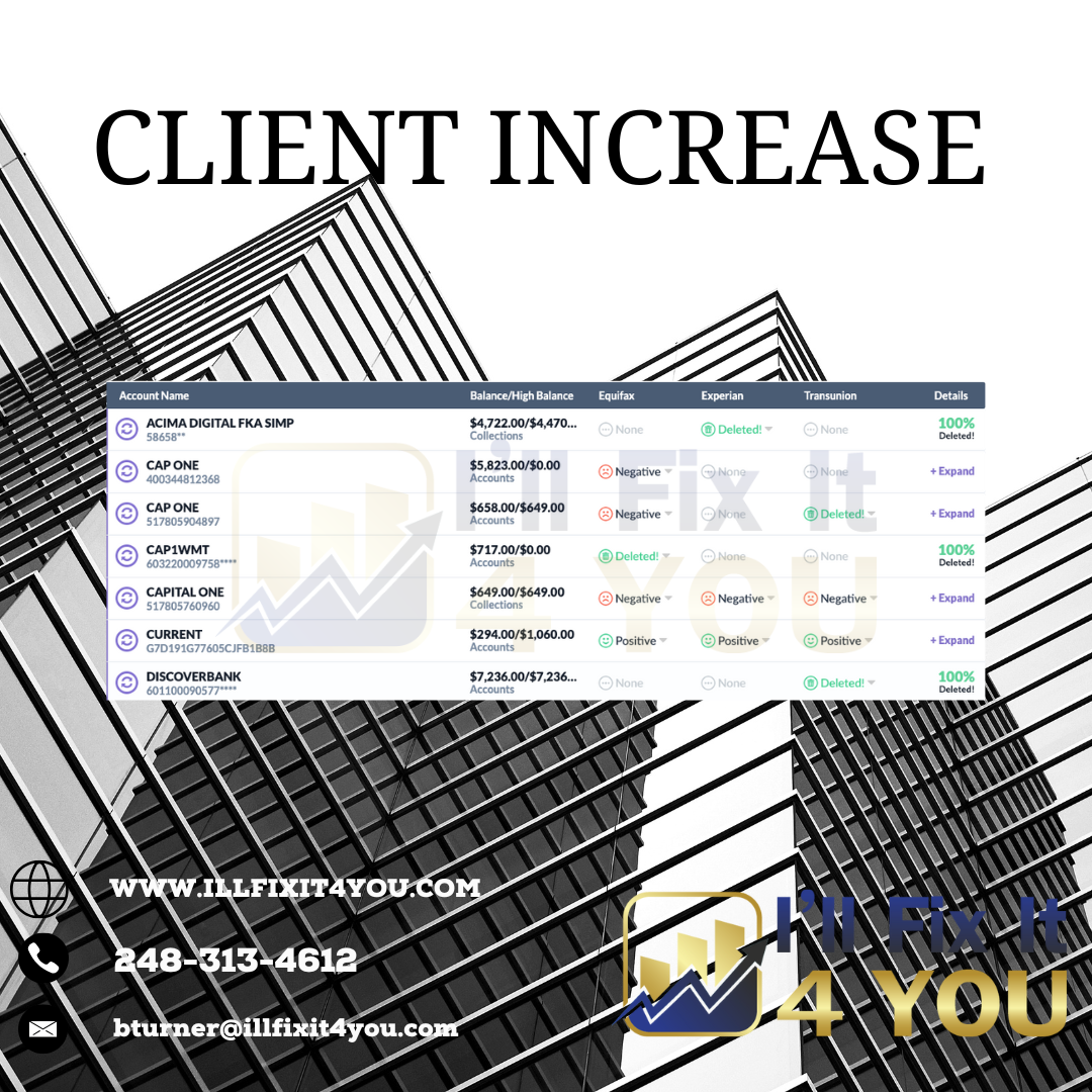 INCOME DISCLAIMER : Although we make every effort to accurately represent the services and/or products presented on this website, I’ll Fix It 4 You LLC makes no assurance, representation or promise regarding future earnings or income, or that you will make any specific amount of money, or any money at all, or that you will not lose money. Earnings or income statements, or examples of earnings or income, represent estimates of what you may earn; however, there is no promise or guarantee that you may experience the same level of earnings or income. There is no assurance that any prior success or past results regarding earnings or income may be an indication of your future success or results.